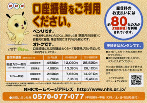 なぜなら、うちはNHKの受信料は口座振り替えにしてるのですから……。